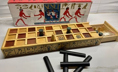 Hãy cùng quay ngược thời gian về khoảng 5.000 năm trước để xem người Ai Cập cổ đại đã chơi như thế nào – và vì sao chúng ta có thể gọi Ai Cập là “thủy tổ” của thế giới boardgame ngày nay. Senet là một trò chơi bảng có lịch sử lâu đời nhất hiện biết, được chơi tại Ai Cập cổ từ thời kỳ Pharaon. Bảng của Senet gồm 30 ô, sắp xếp theo 3 hàng × 10 cột. Trò chơi xuất hiện trong các lăng mộ Pharaon, tranh tường mộ và các vật phẩm khảo cổ – cho thấy nó không chỉ là trò chơi giải trí mà còn gắn liền với yếu tố tín ngưỡng.