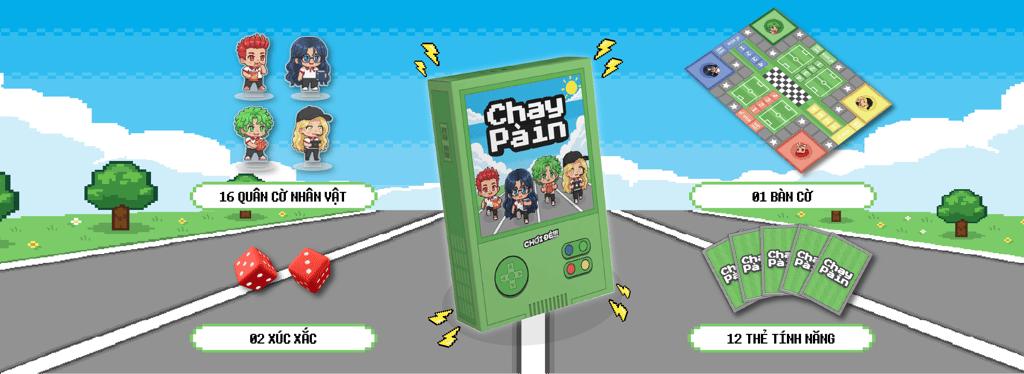 Cờ cá ngựa “Chạy Pàin” là phiên bản cải tiến vui nhộn và hiện đại hơn của cờ cá ngựa truyền thống. Lấy cảm hứng từ những tiết thể dục “đi vào huyền thoại” ở HANU, Cờ cá ngựa Chạy Pàin biến môn chạy bền quen thuộc thành một hành trình vui nhộn đầy tiếng cười với phong cách thiết kế trẻ trung, luật chơi sáng tạo, và đặc biệt là hệ thống nhân vật có cá tính rõ rệt. Mỗi nhân vật đại diện cho một “kiểu sinh viên” khác nhau trong trường đại học.